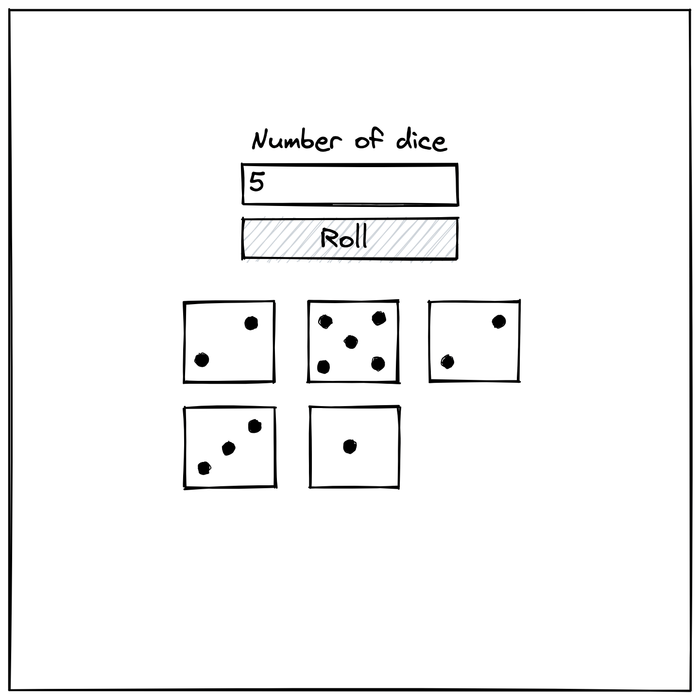 Create a dice roller application that can roll anywhere from 1-99 six-sided dice. The dice should be displayed in rows of three, wrapping as needed.