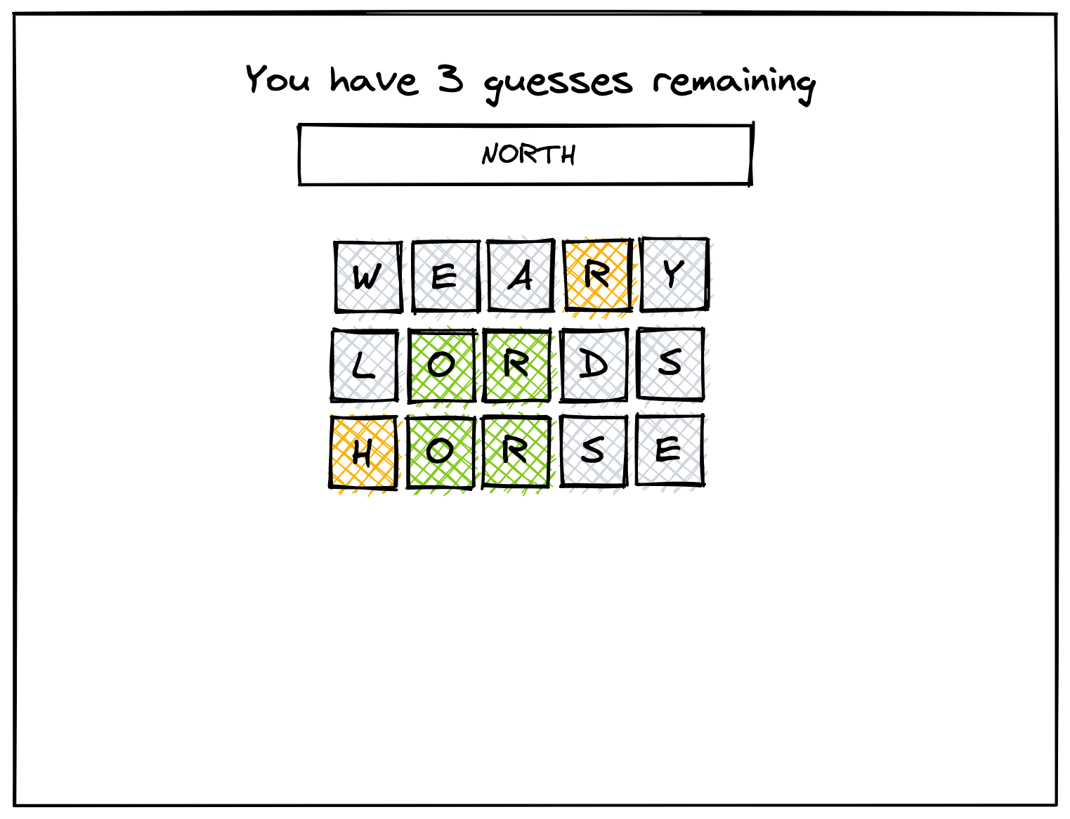 - User receives feedback on a guess in the form of highlighted letters (see description above)